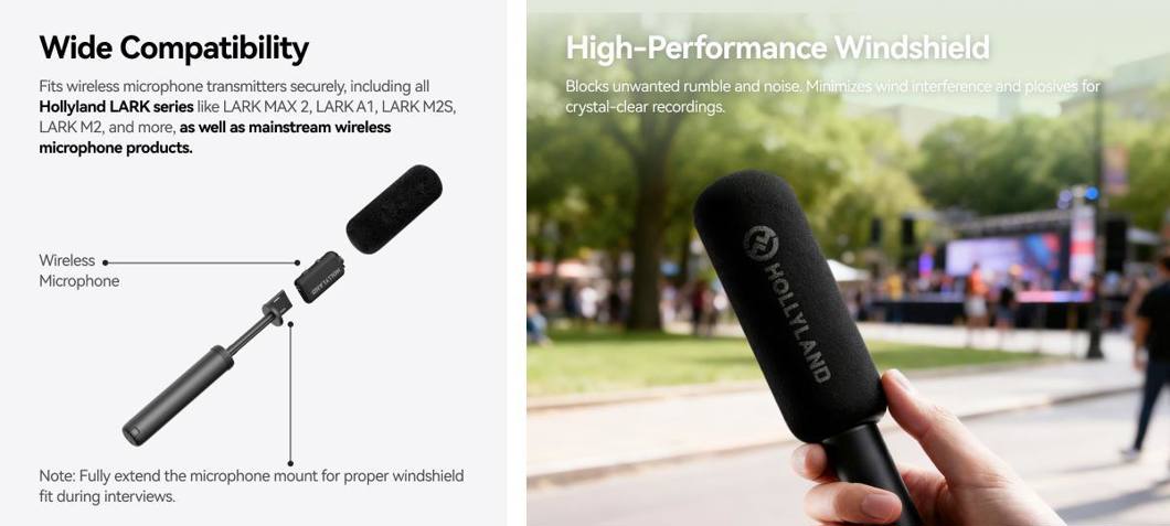 Fits wireless microphone transmitters securely, including all Hollyland LARK series like LARK MAX 2, LARK A1, LARK M2S, LARK M2, and more, as well as mainstream wireless microphone products.